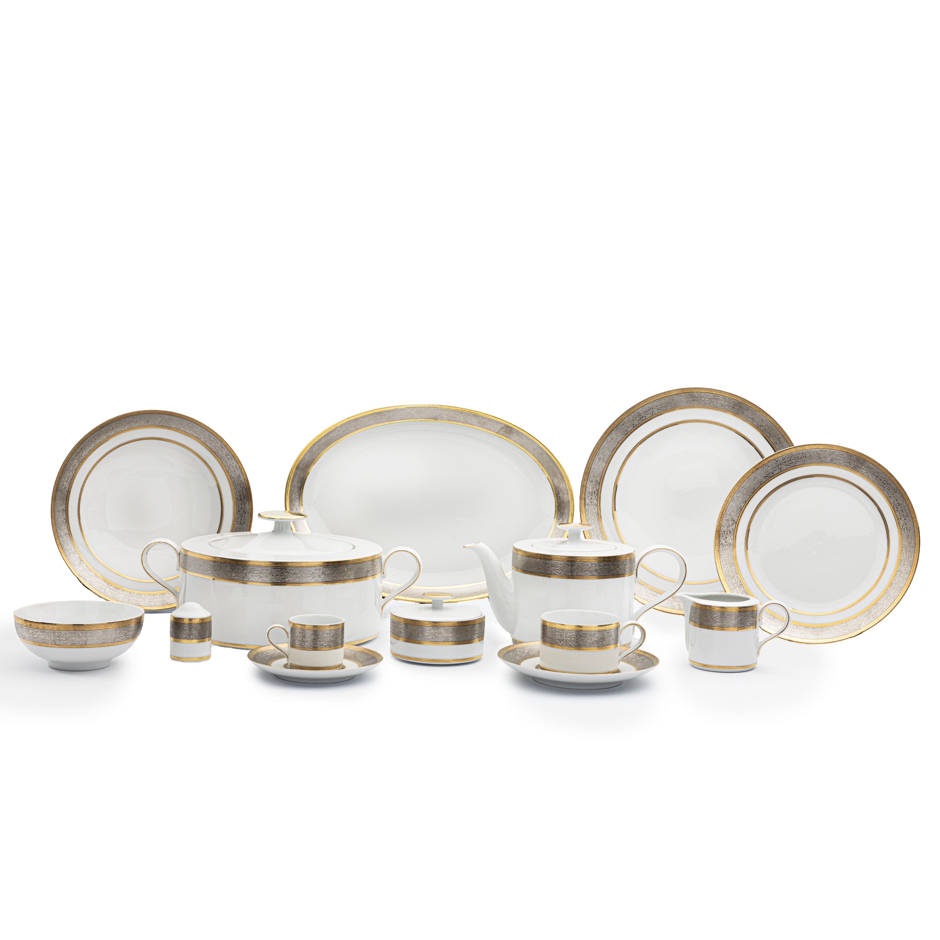 Falkenporzellan Dinner Set, 112 Pieces -Silver & Gold -Porcelain