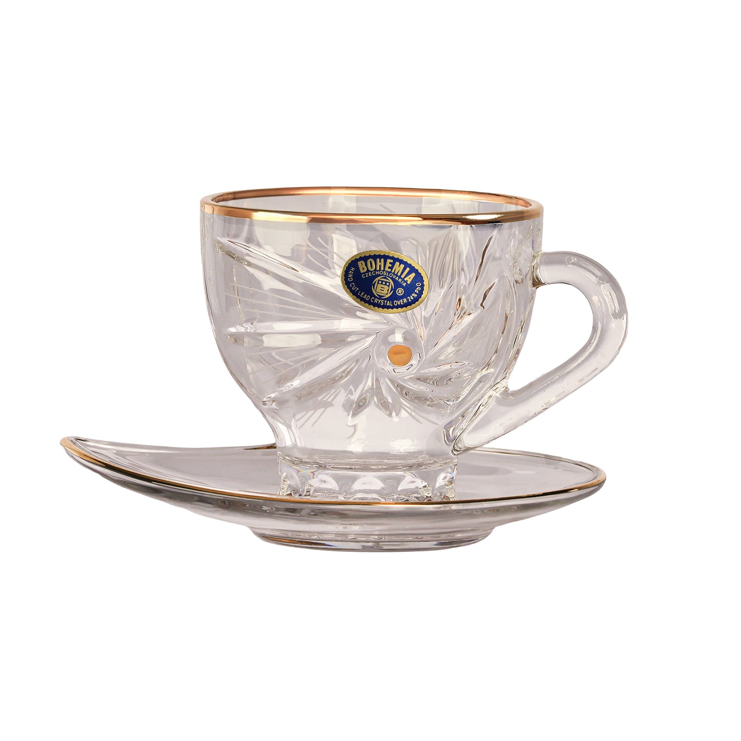 Item: Bohemia Crystal Teacup with Saucer Set, 12 Pieces -Gold