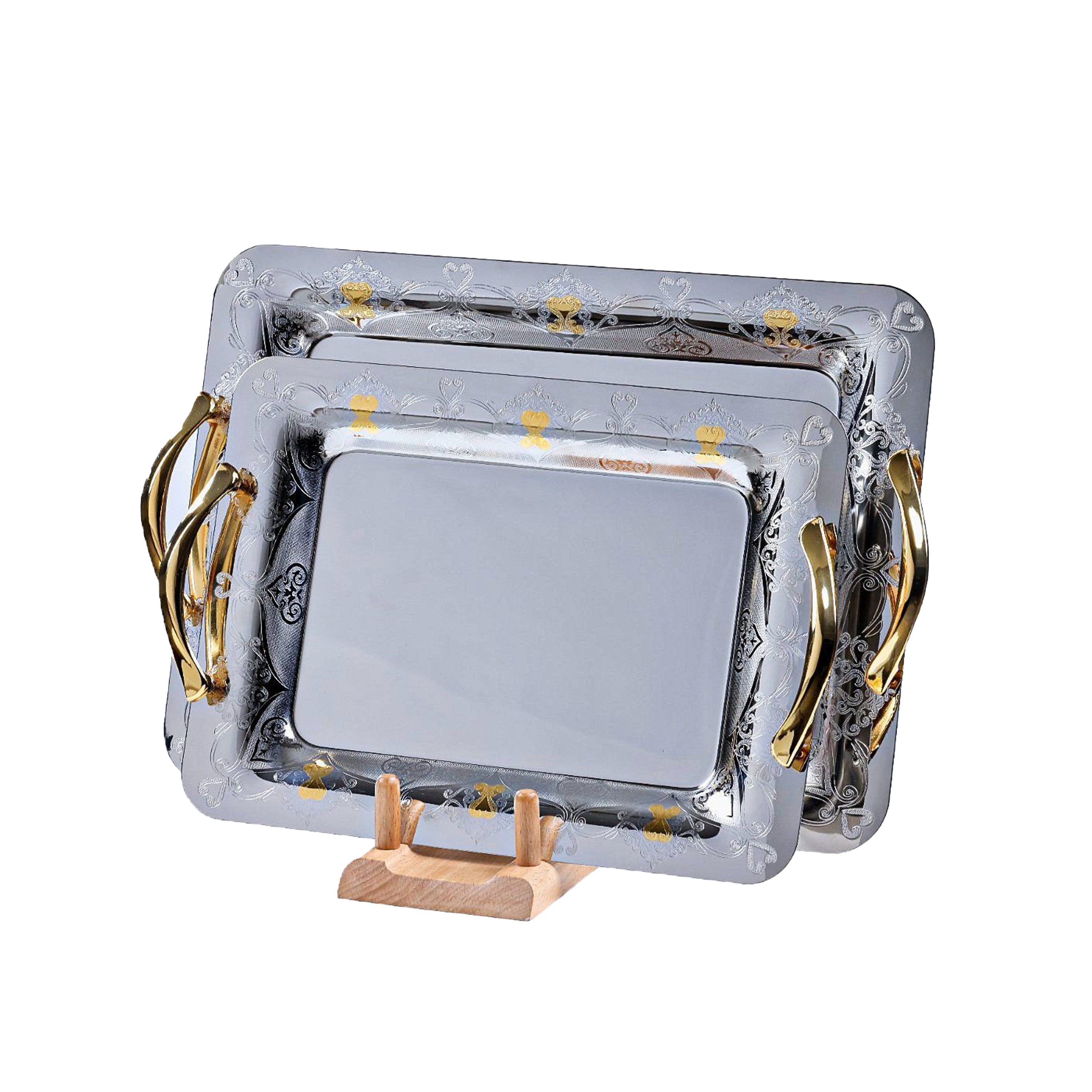 Item: Arsha Rectangular Tray with Handles, 2 Pieces -Stainless Steel 18/10