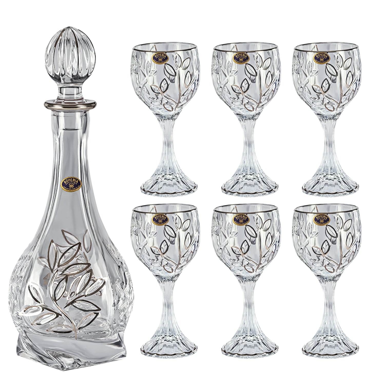 Bohemia Crystal Bottle & Goblet Set, 7 Pieces
