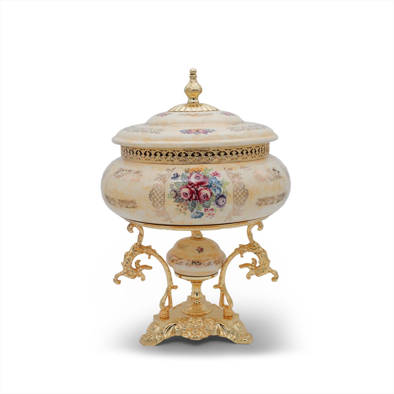 Limoge Rostema Potiche with Base -Beige & Gold -30x30x43 cm