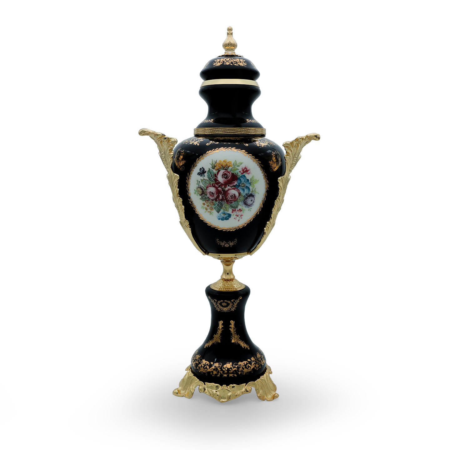 Limoge Rostema Potiche with Base & Gold Plated Handles -Cobalt Blue & Gold -53 cm